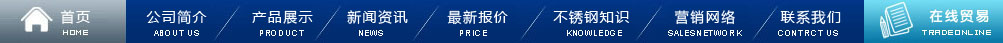 首頁 | 公司簡介| 產(chǎn)品展示 | 新聞資訊 | 最新報價 | 不銹鋼知識 | 營銷網(wǎng)絡(luò) | 在線留言 | 聯(lián)系我們